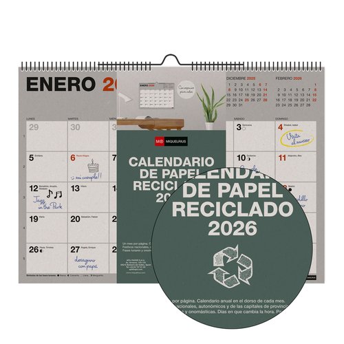 CALENDARIO (2026) MIQUELRIUS PARED RECYCLED MENSUAL PARA ESCRIBIR A3 420x300